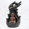 The hand in the Bhutadamara mudra as a representation of protection from evil spirits and negative energy makes it a great decor for the home or yoga studio. Underneath the gesture, also called mudra, you find a miniature version of Siddharta Gautama Buddha, the founder of Buddhism, who later became known as “the Buddha”, which means “The awakened one”. He sits quietly in a meditative position on a lotus flower.